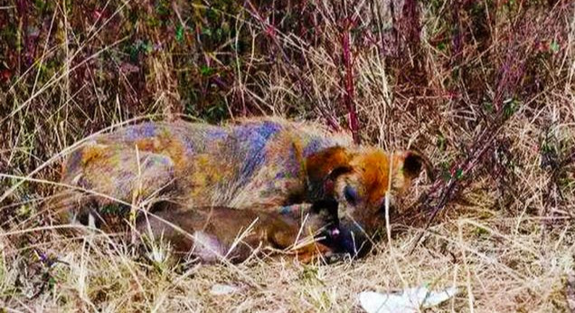 接着狗妈妈便趴在小狗的身旁,轻轻地舔舐着它身上的伤口,而且还时不时对着小狗叫几声,狗妈妈仿佛就像在与小狗说话一样,虽然小狗已经走了,但是在狗妈妈的心中,它还活着,只是太累了睡着了。