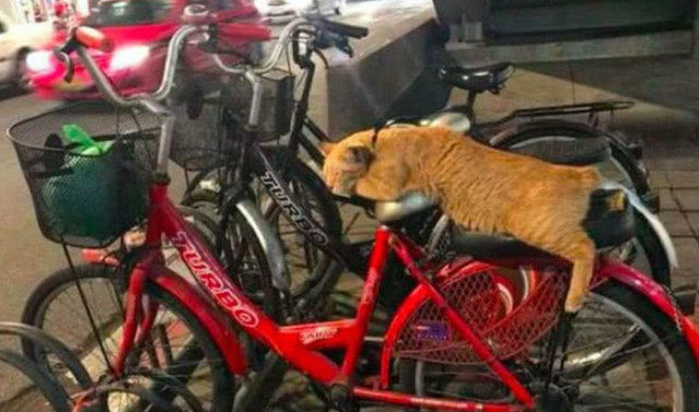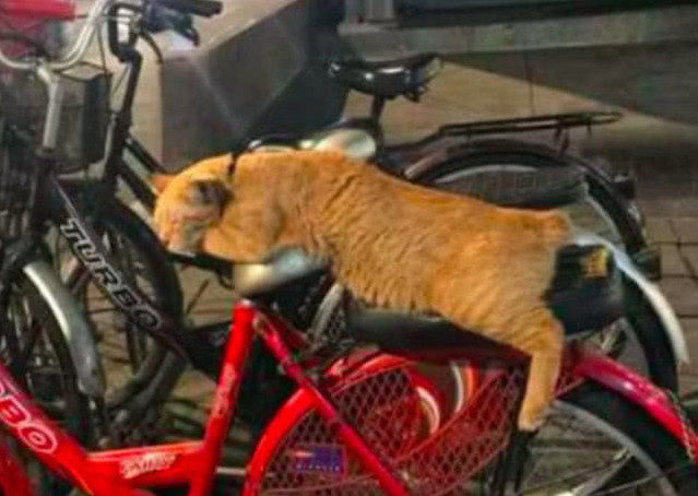于是女子便嘱咐猫咪,让它把车子看好。其实女子只是随口一说,她觉得猫咪肯定不会为它看车子的。可是女子逛完商场出来之后,眼前的一幕却让她震惊了。猫咪将整个身子都放在了车子上,一动不动的保护着它的自行车,此时的她真是感动极了。