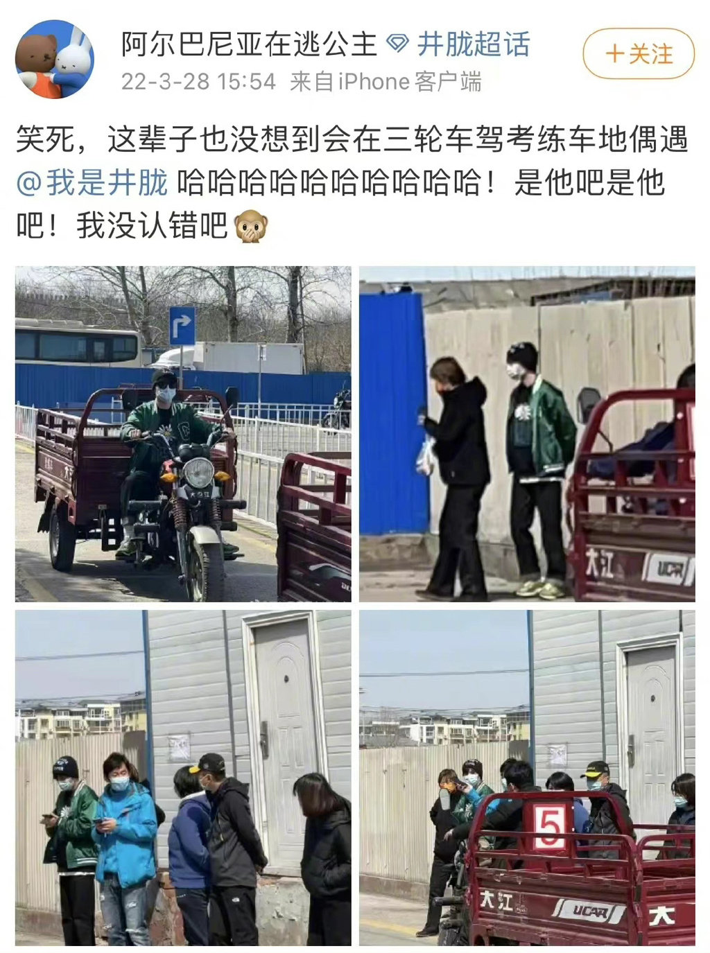 #网友三轮车驾考练车偶遇井胧##网友偶遇井胧练三轮车#网友三轮车驾考练车偶遇井胧,是糊图也挡不住的帅气呀,好像偶遇!
