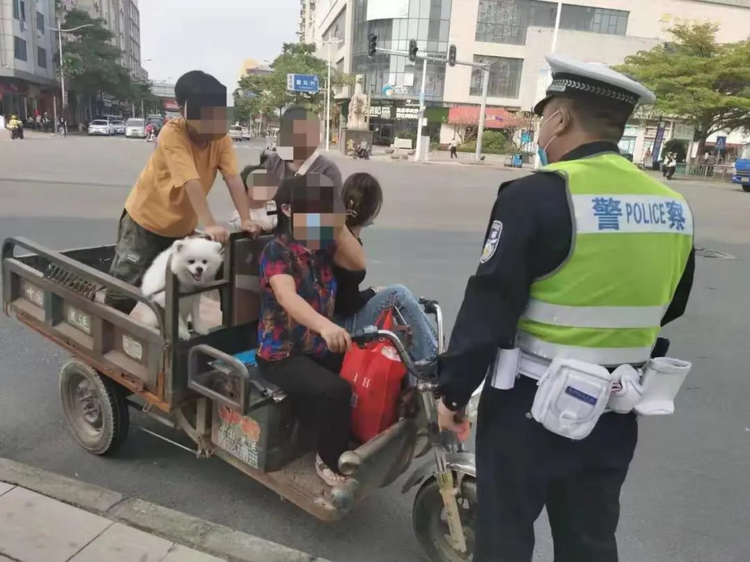2022年2月8日下午13时14分许,东莞交警沙田大队在辖区内查获一辆严重超员载人的三轮摩托车。除驾驶三轮摩托车的男子外,该车车斗内还载有3男5女共8名成年人,分别坐在车斗拦板边缘和放置在车斗内的小板凳上,十分拥挤,且驾乘人员均未佩戴安全头盔。经对驾驶人冯某核查发现,冯某未考取机动车驾驶证。