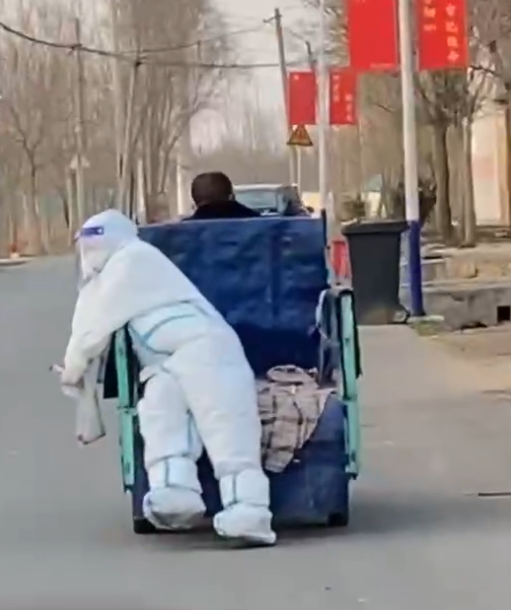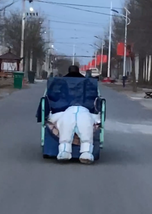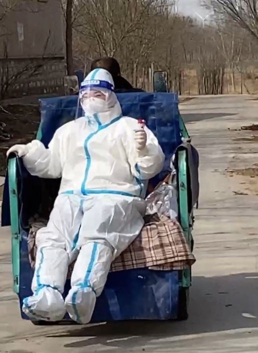 3月22日,潇湘晨报记者与该视频中的“大白”取得联系,该“大白”是来自山东东营的24岁的李女士,李女士目前在山东滨州工作,“当时的工作任务是在滨州的某乡镇进行入户核酸采集,视频是当地镇政府的工作人员拍的,骑三轮载我上下班的是当地的驻村干部。”