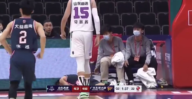 在如此比赛,在进行到第二节还剩1分多钟时,广东本土后场核心赵睿上篮被打到之后,他身体在空中失去平衡重摔在地板上,赵睿疑似头部受伤,导致他长时间倒在地板上没有起来,队医也是迅速入场查看。