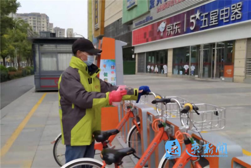在市区洪泽湖路附近的一处公共自行车站点,笔者看到了管理人员对自行车进行消毒的身影。管理人员陈先生告诉记者,按照相关的防疫要求,他们现在每日要执行不少于一次清洁消毒工作,并针对机柜按键、刷卡区、车把、鞍座、铃铛等市民租车骑车经常接触的部位进行重点消毒,同时,对商业区、办公区、住宅区等租还量比较大的重点区域适时增加消毒频次,最大程度降低疫情传播风险,从而保障广大市民生命安全和身体健康。
